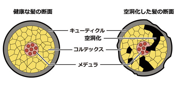 キューティクルが剥がれ、